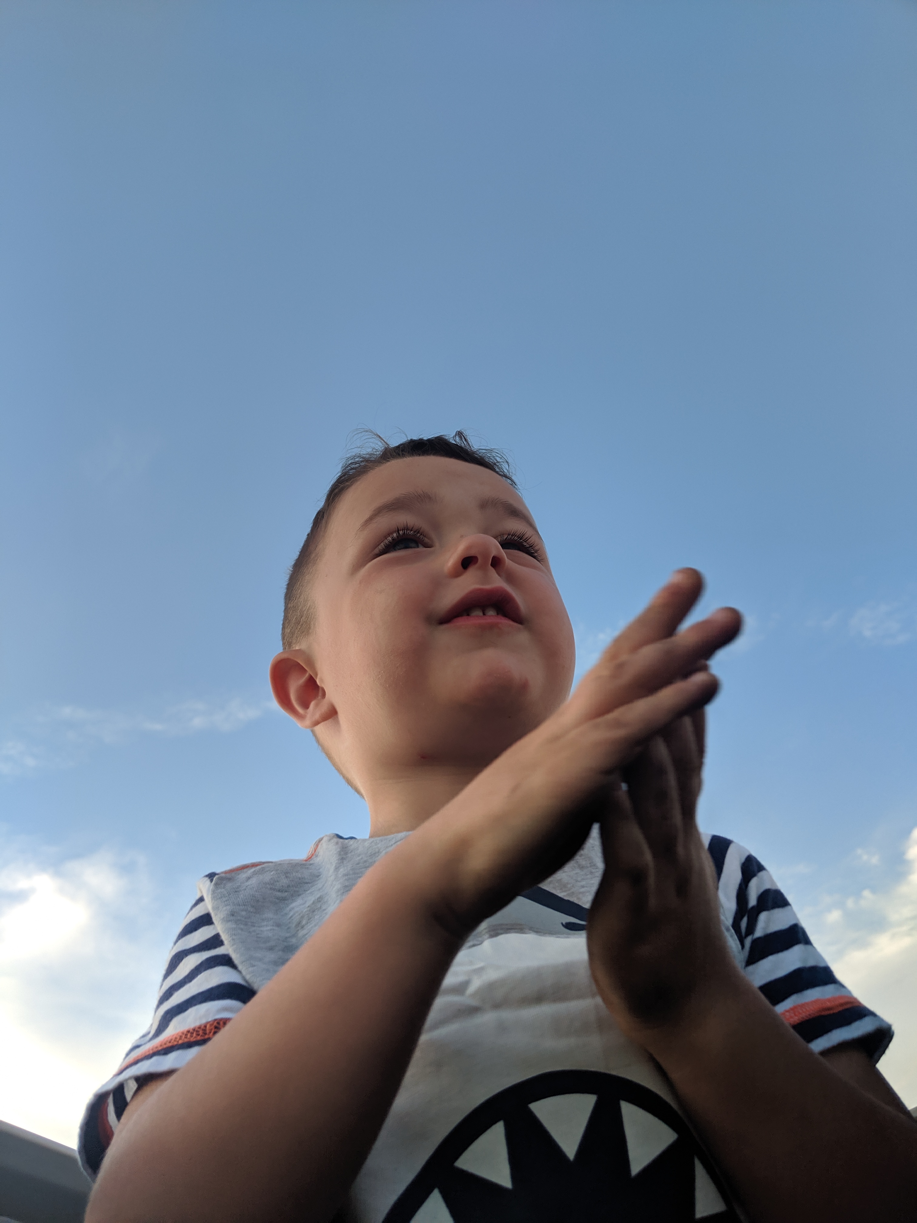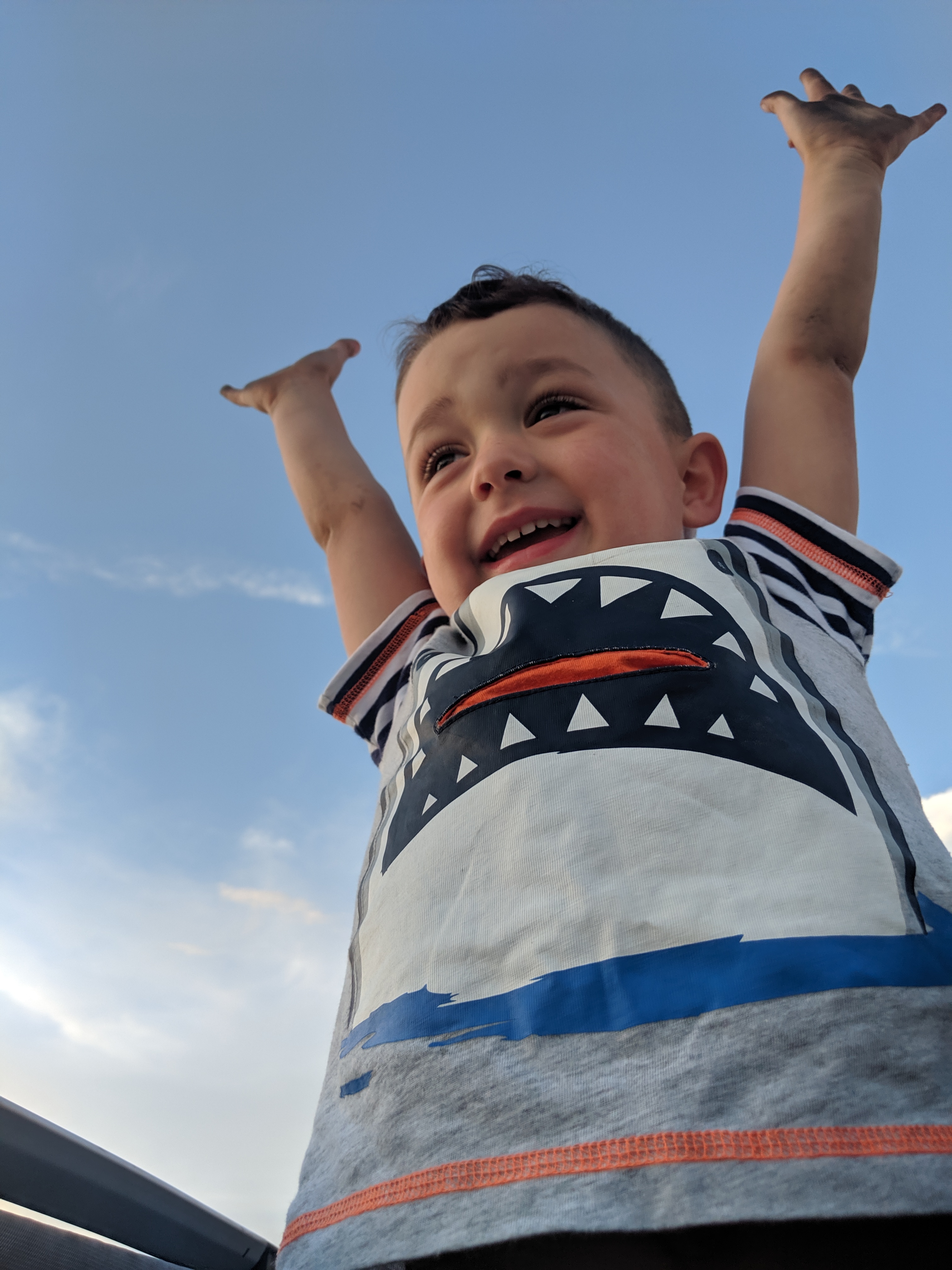 At three years old it’s not easy to understand why we can’t just go where Mommy and Daddy and Bubby are. Why can’t we go to the “hotel” with them? He can understand overnights in a hotel, but not the hospital. But he was very good at handling it most of the time. The evening these pictures were taken, he had been asleep on the sofa for a good, long nap, so I woke him up to get ready. He was crying the whole time, but I knew he’d be ok once he got good and awake. There was something important I thought we needed to attend. Well, I thought it was important. He cried for his mommy from the time I woke him up. I told him we needed to go to this place. He just wanted to go “do something fun”. The place we went turned out to be hurtful rather than helpful, and we left. I pulled over into a parking lot. He video called his momma and felt better. He and I both were at the end of our ropes and exhausted. He handed me the phone from the backseat. As he did, he “accidentally” dialed my bestie. I put the word accidentally in quotes, because it wasn’t an accident. [I don’t believe in coincidences, and neither does my bestie.] I needed to talk to my bestie in that moment. I had just been kicked while I was down. I told Gray he could get out of his car seat, and we would go inside in a few minutes and grab a bite to eat. While my friend talked me off the edge, this baby lifted my spirit as he stood on the console with hands in the air through the open sunroof saying, “THIS is FUN!” And it was….”